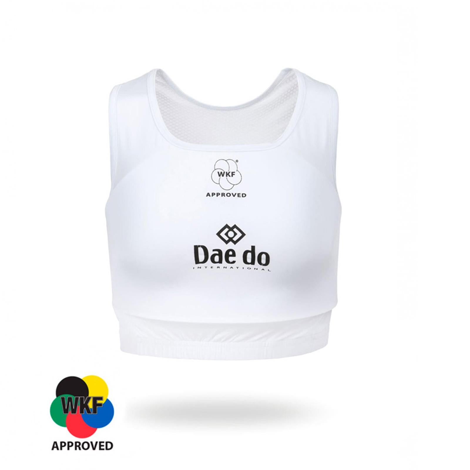 Consisting of a removable hard plastic element inside and a white elasticated vest. WKF approval guarantees entry to any tournament.