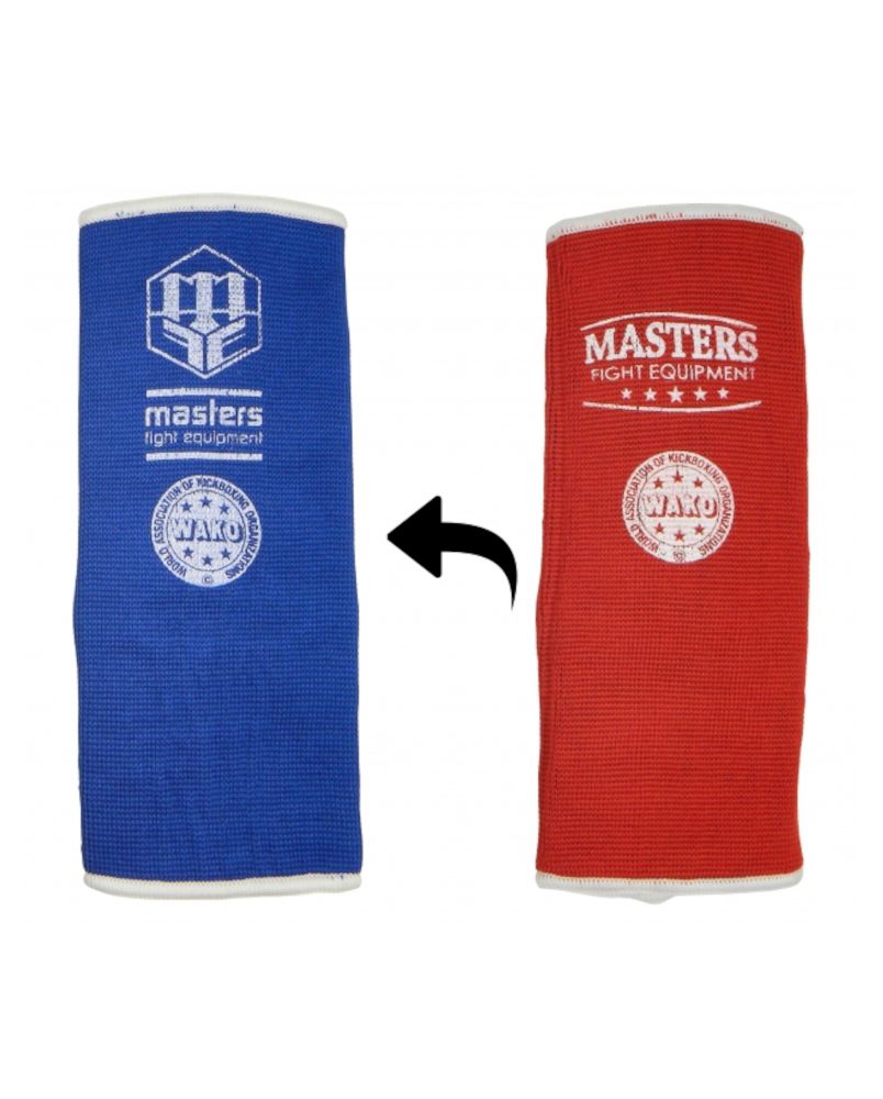 The WAKO Reversible Red and Blue Masters Kickboxing Ankle Brace is the ideal accessory for kickboxing , combat sports, and martial arts athletes seeking the perfect balance of support, stability, and protection. This Masters-branded, WAKO-approved, reversible stretch ankle brace provides protection against scratches and abrasions during training and sparring.