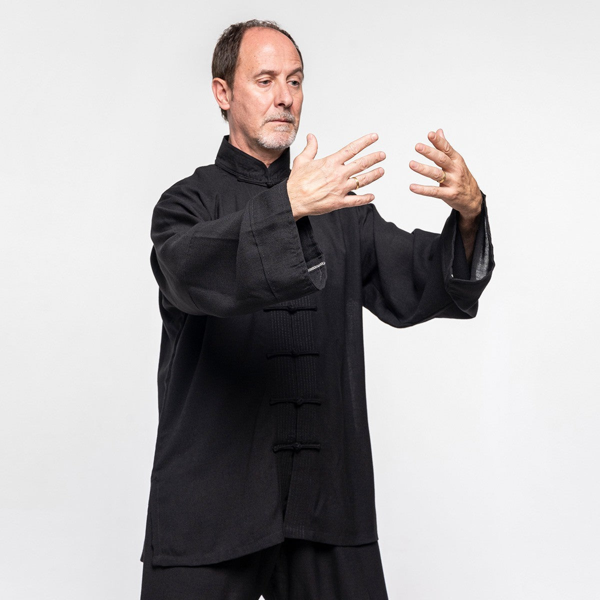 • Traditional Fit: The design features a classic Mao collar and a loose fit, designed to completely free the arms and torso from restrictions, favoring the width and elegance of the figure.